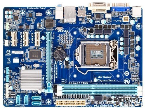技嘉H61MA-D2V主板是一款采用了M-ATX板型設計,基于Intel H61芯片組,支持LGA1155接口Core i3/i5全系列處理器的小尺寸主板,性價比較高。供電方面,采用3+1+1相供電模塊,搭配選用全固態電容,以及全封閉式電感用料,保證了供電的穩定性。插槽方面,提供2條DIMM插槽,支持雙通道DDR3 1333/1066規格內存,最大支持8GB內存容量。提供4個SATA2磁盤接口,支持多種常見磁盤陣列模式,足以滿足用戶的基本應用,此外,提供1條PCI-E 16X 2.0顯卡插槽,還包括3條PCI-E 1X插槽,提供PS/2鍵鼠、USB2.0/USB3.0,VGA+DVI視頻輸出、網絡/音頻輸出等I/O接口。
