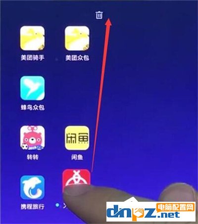 2、長按此軟件,屏幕頂端會出現一個垃圾桶標志,把這個軟件拖動到上方垃圾筒上。