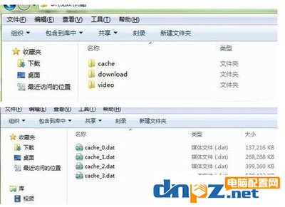 2、在下載路徑中,cache是緩存路徑,download是下載路徑,video是轉碼路徑。進入cache,選中youkudisk,刪除其中的“cache_0.dat”、“cache_1.dat”等所有緩存文件;