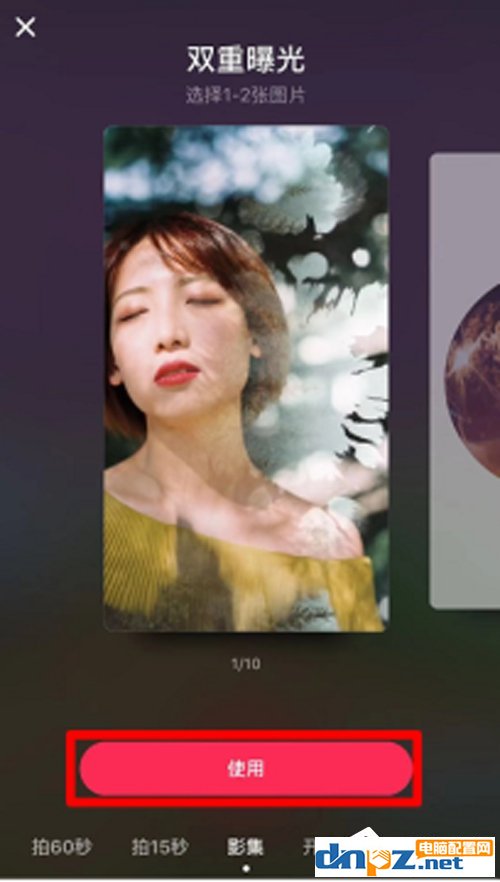 成功打開了“影集”的之后,我們就可以找到“雙重曝光”的特效模板,并且點擊進入其中,導入視頻素材進行編輯。