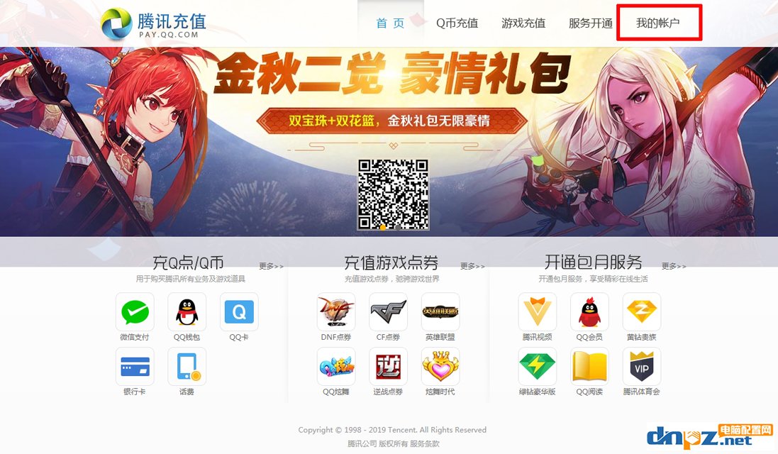首先,登錄QQ充值中心,并打開我的賬戶;
