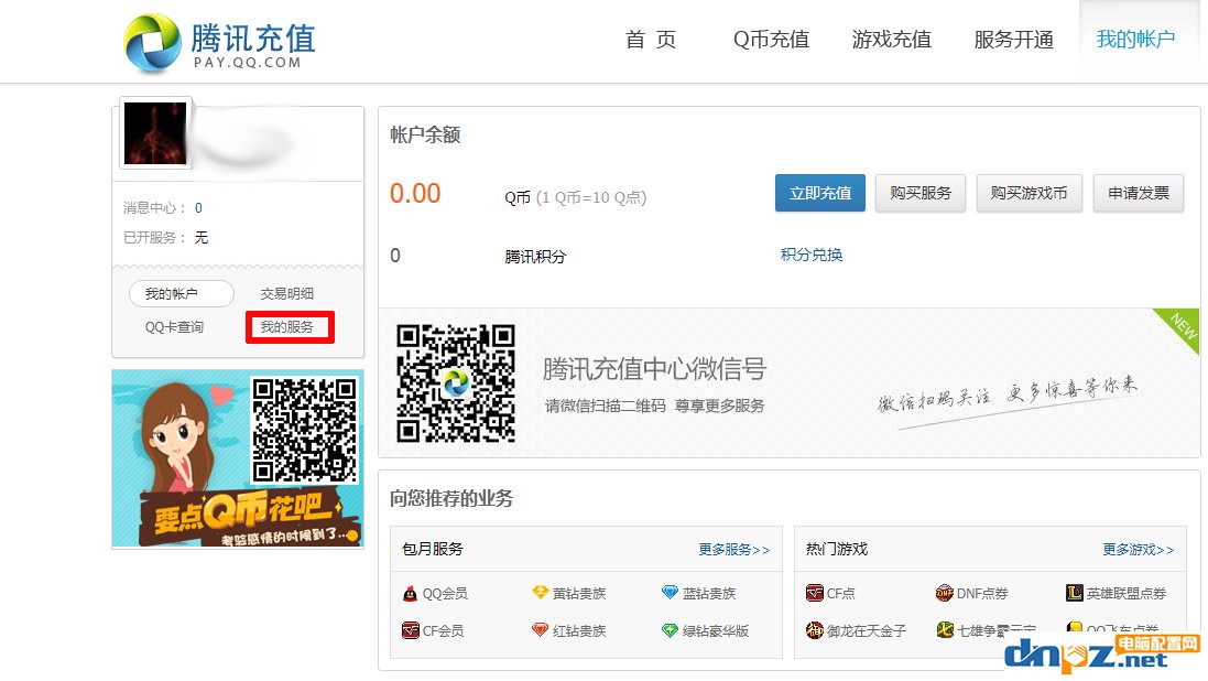 接著在左邊選項欄中找到“我的服務”就可以看到自己已經開通的騰訊各項業務了;