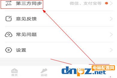 1、首先,進入到“我的”個人信息設置界面,在最下方的功能欄目中可以看到“第三方同步”功能,可以幫助用戶綁定微信和支付寶等平臺,點擊進入即可。