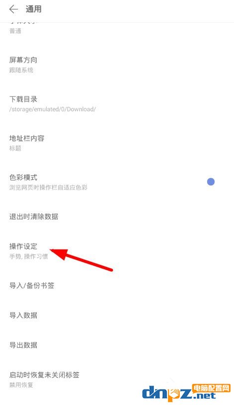 2、接下來在設置列表里選擇“通用”選項,就可以找到“操作設定”的功能,從而設置開啟下拉刷新的服務了;